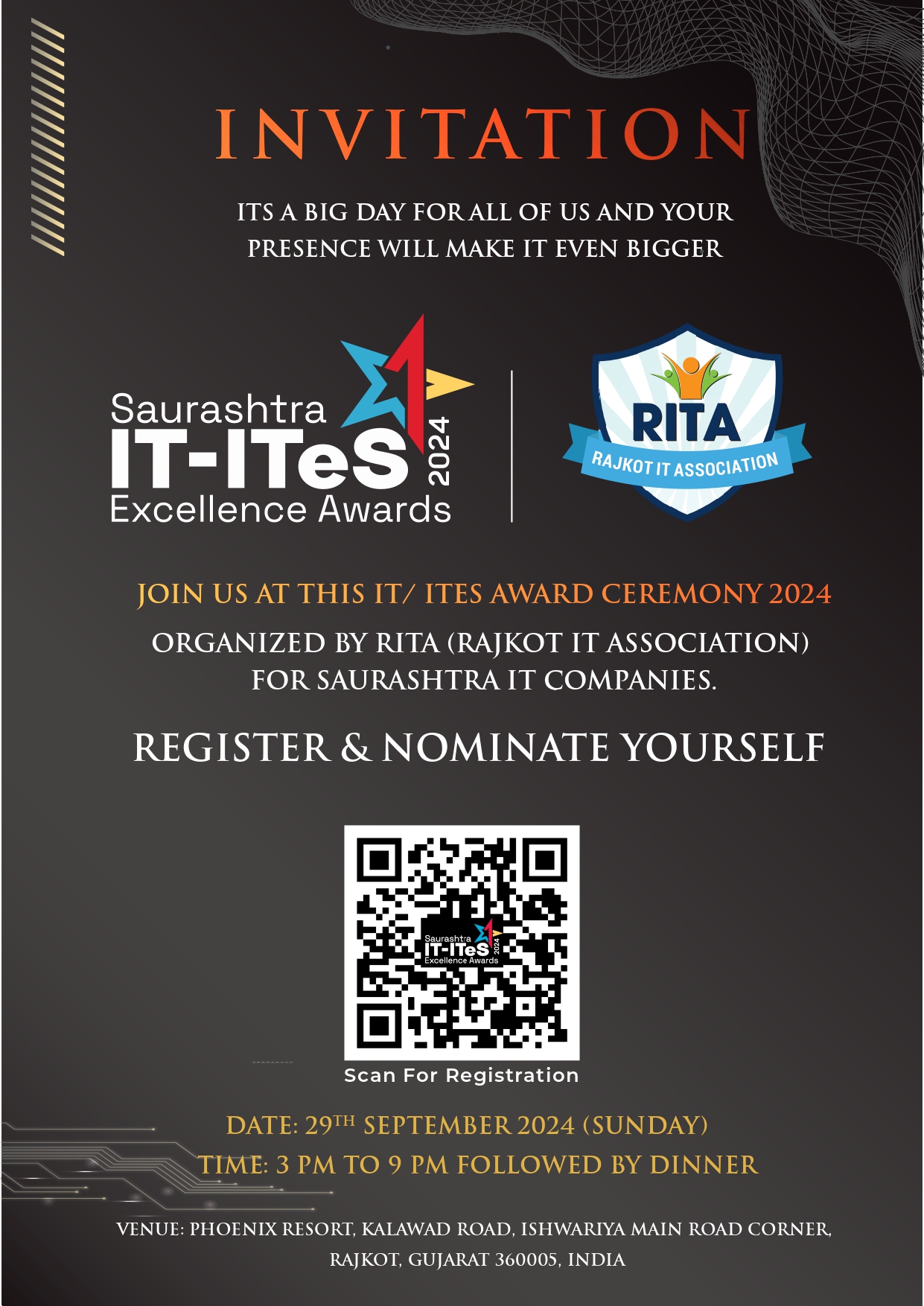 RITA initates to recognize Innovation, Excellence, Success and Achievement of various stake holder of IT-ITeS sector flourishing in Saurashtra region. IT-ITeS excellence Awards 2024 is going to mark few